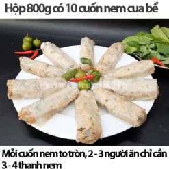Mỗi hộp nem là 10 thanh nem năng 800g, mỗi thanh nem khá to và dài nên 2 -3 người ăn chỉ cần 3 -4 thanh nem là đủ anh chị nha.